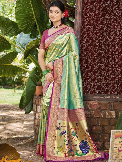 SANGAM PRINTS brings to you this saree which is made from Kanjivaram Silk fabric and is available in attractive colours. The saree is a suitable amalgamation of style with the grace that is required from an ethnic wear. You can wear it to casual occasions as well as make it a part of your festive wear.The saree comes with a 80 cm separate blouse piece which is of the same shade as that of saree. It is unstitched and can be altered according to your desired style and fit.Pair this saree with a clutch and a pair of fashion sandals or any casual footwear of your choice for a casual look when dressing up for a party. You can also pair it with a pair of earrings and bangles when adorning this outfit for a festive occasion. SANGAM PRINTS Sarees For Women With Blouse. This Is Saree For Women. Saree Length Is 6.30 Mtr Including Blouse Piece. Blouse Is Unstitched Fabric And 0.80 Meter. This Saree Looks Beautiful In Evening Parties.
