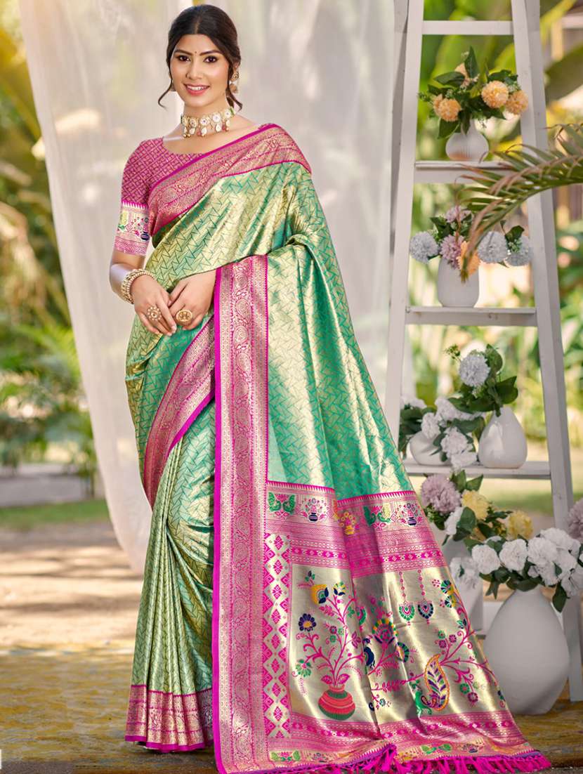 SANGAM PRINTS brings to you this saree which is made from Kanjivaram Silk fabric and is available in attractive colours. The saree is a suitable amalgamation of style with the grace that is required from an ethnic wear. You can wear it to casual occasions as well as make it a part of your festive wear.The saree comes with a 80 cm separate blouse piece which is of the same shade as that of saree. It is unstitched and can be altered according to your desired style and fit.Pair this saree with a clutch and a pair of fashion sandals or any casual footwear of your choice for a casual look when dressing up for a party. You can also pair it with a pair of earrings and bangles when adorning this outfit for a festive occasion. SANGAM PRINTS Sarees For Women With Blouse. This Is Saree For Women. Saree Length Is 6.30 Mtr Including Blouse Piece. Blouse Is Unstitched Fabric And 0.80 Meter. This Saree Looks Beautiful In Evening Parties.