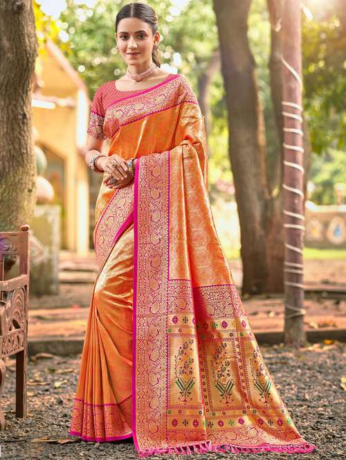 Aarvi Fashion brings to you this saree which is made from Kanjivaram Silk fabric and is available in attractive colours. The saree is a suitable amalgamation of style with the grace that is required from an ethnic wear. You can wear it to casual occasions as well as make it a part of your festive wear.The saree comes with a 80 cm separate blouse piece which is of the same shade as that of saree. It is unstitched and can be altered according to your desired style and fit.Pair this saree with a clutch and a pair of fashion sandals or any casual footwear of your choice for a casual look when dressing up for a party. You can also pair it with a pair of earrings and bangles when adorning this outfit for a festive occasion. Aarvi Fashion Sarees For Women With Blouse. This Is Saree For Women. Saree Length Is 6.30 Mtr Including Blouse Piece. Blouse Is Unstitched Fabric And 0.80 Meter. This Saree Looks Beautiful In Evening Parties.