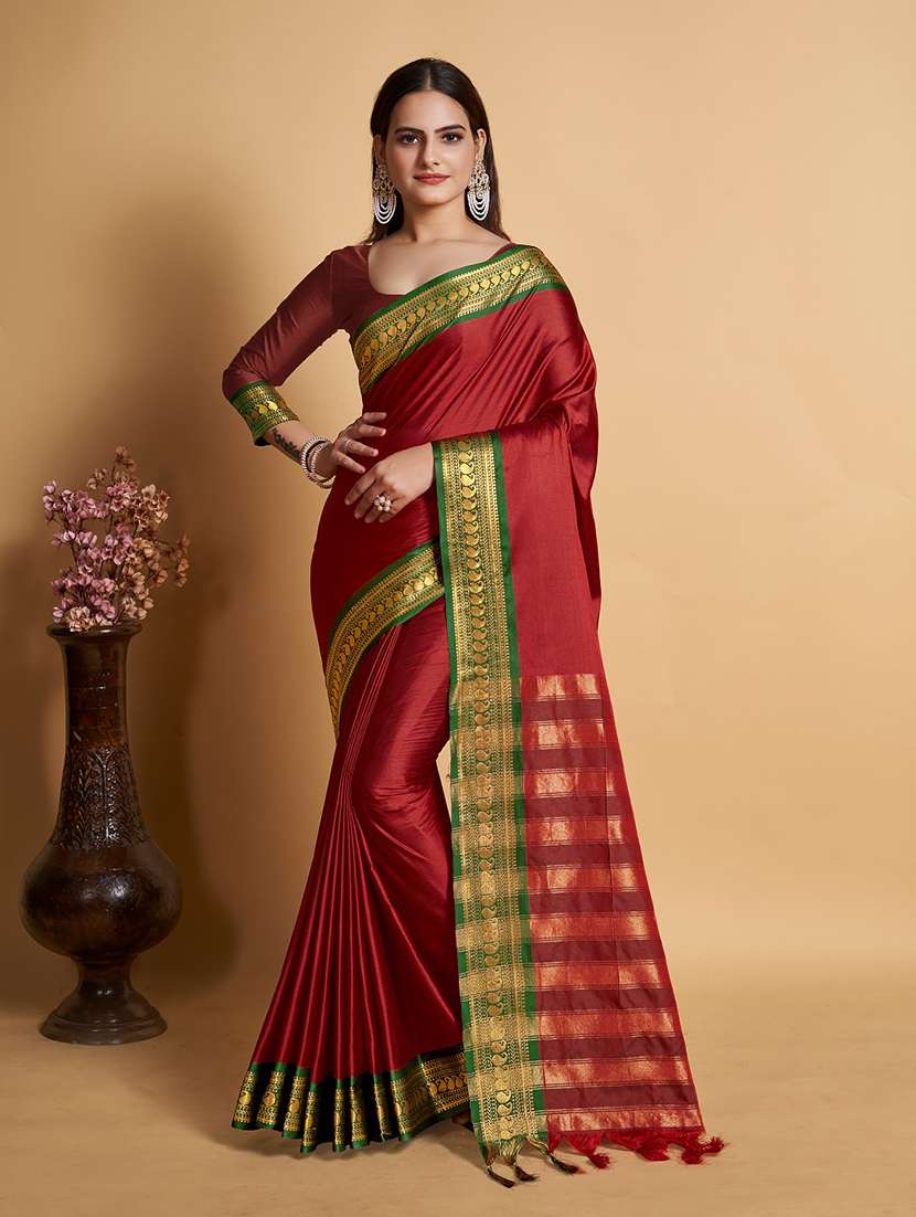 women solid with bordered saree  with blouse - 21635229 - Very Small Image - 1
