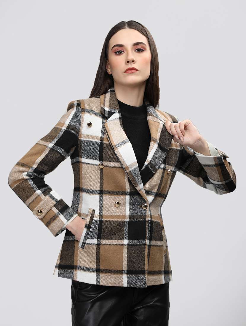 - » women checkered regular coat
