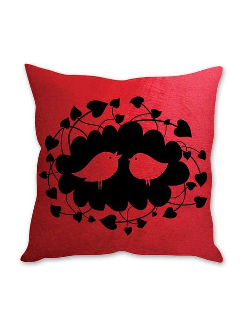 - » love birds printed red velvet cusion cover