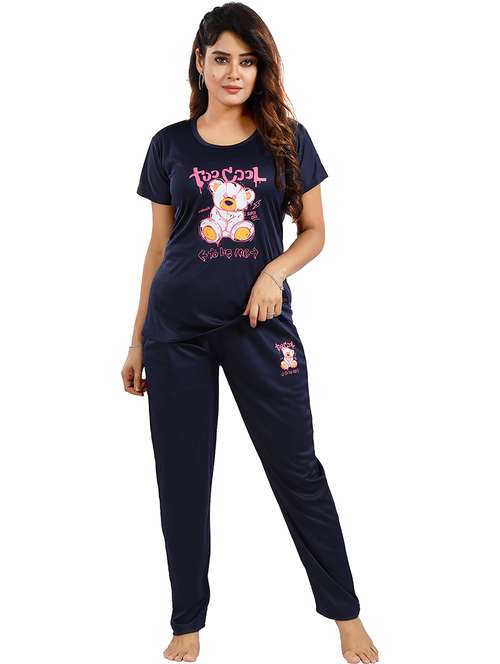 - After a long tiring day, slip into something homely, shop for the all-new collection of nightwear sets for ladies in M sizes and gorgeous blue designs and colors.