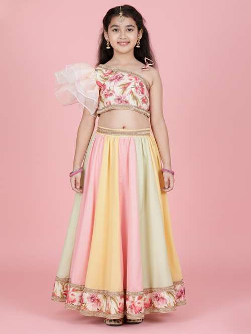 girls floral multi colored viscose lehenga choli