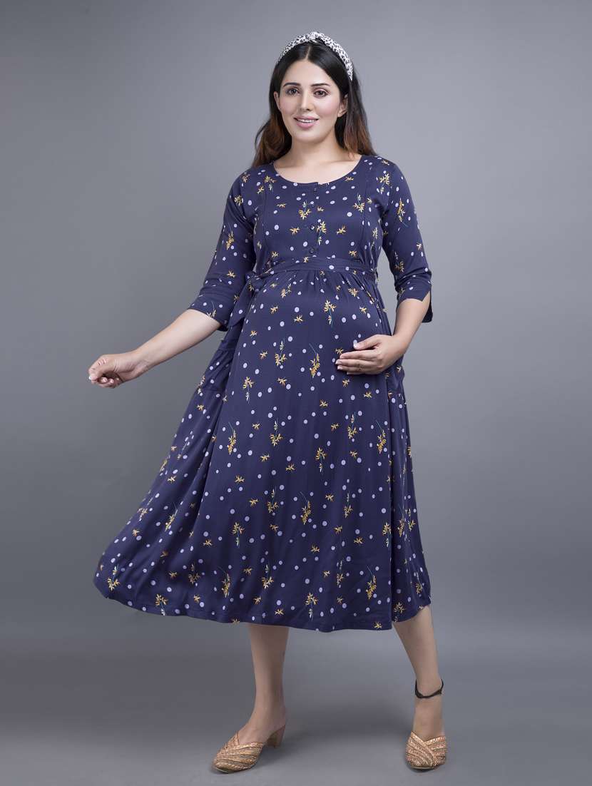 - » navy blue printed maternity dress