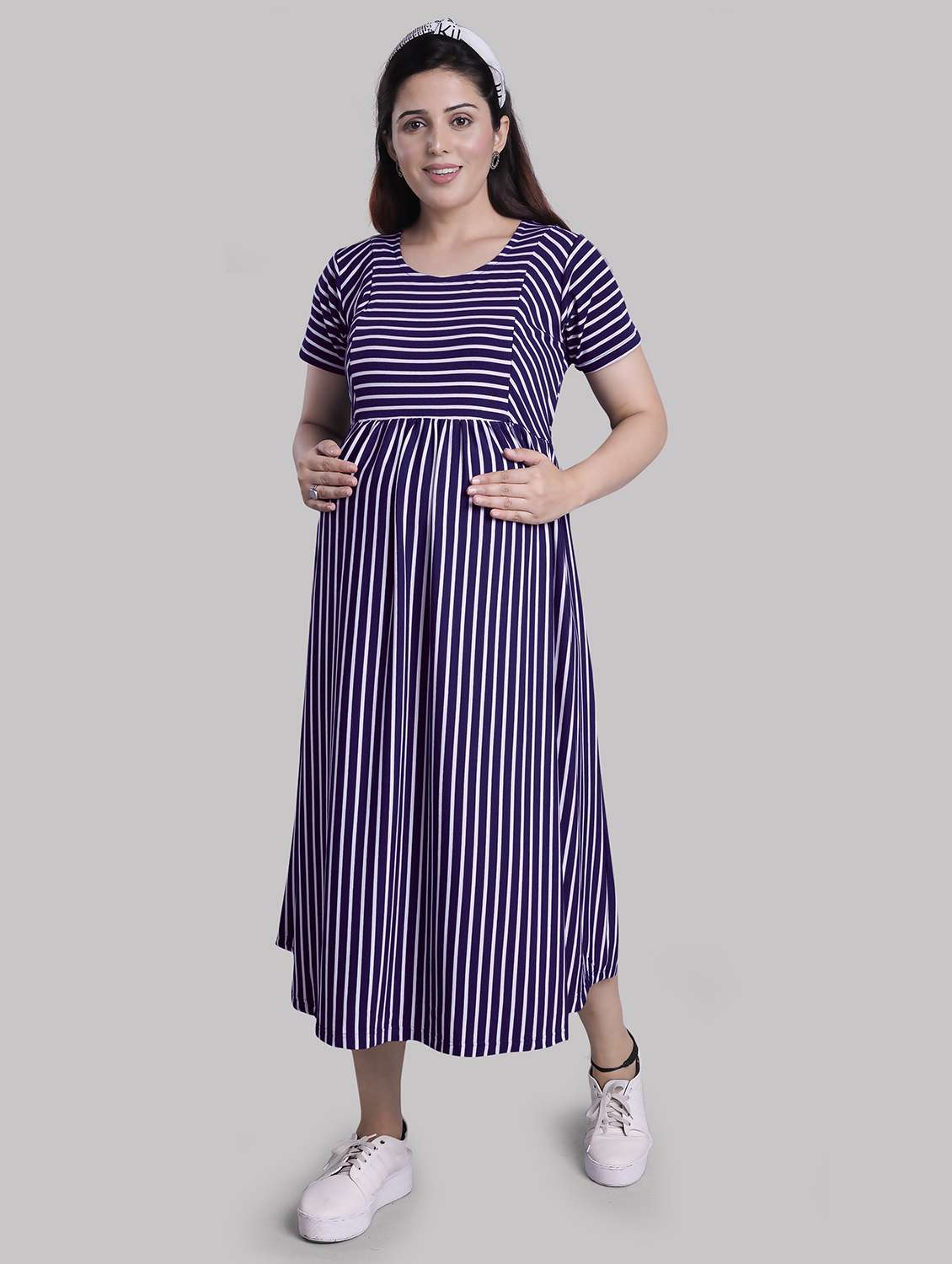 women's blue maternity striped dress