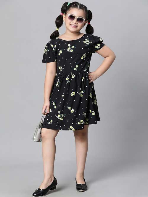 - Dress up your little ones in frocks featuring pretty patterns in viscose .