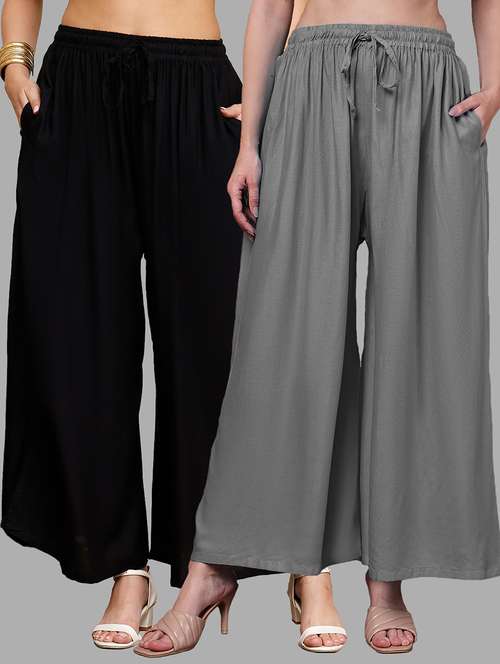 Upgrade your collection of warm-weather staples with these top-notch Grey and Black Pocket Palazzos combo's by Valles365. Pair them with a flowy tee and lace-up sandals for a super chic look.