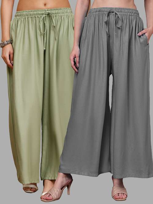 women pack of 2 solid mid rise flared palazzo - 22143441 - Very Small Image - 1