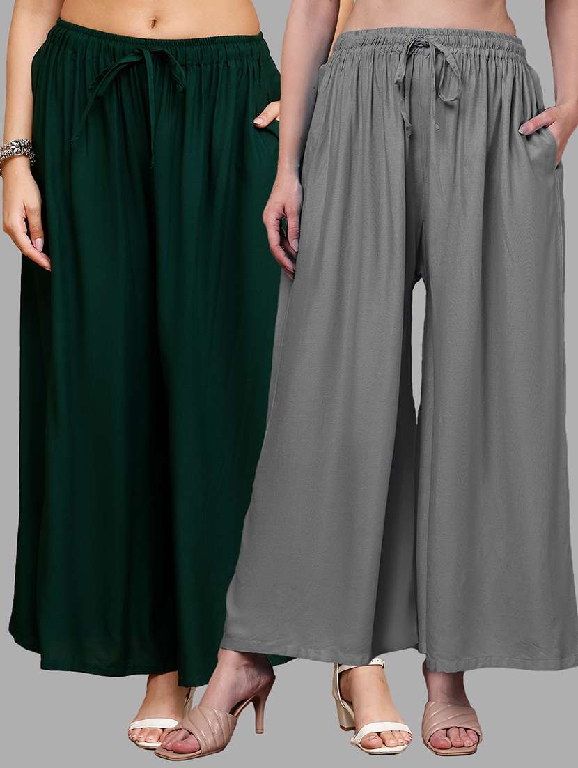 Upgrade your collection of warm-weather staples with these top-notch Grey and Dark Green Plus Pocket Palazzos combo's by Valles365. Pair them with a flowy tee and lace-up sandals for a super chic look.