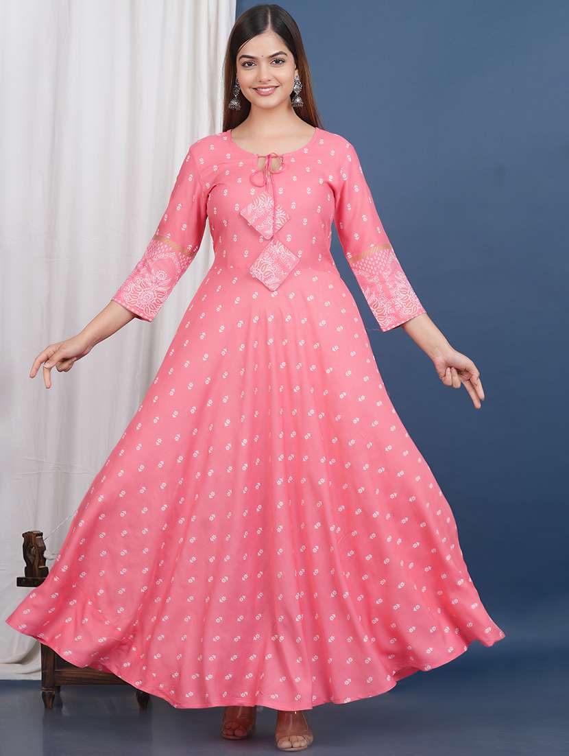 - » women pink floral printed detailed dress