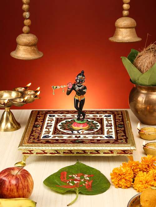 carnival peacock designed hand-made wooden meenakari rajwadi chowkipatra