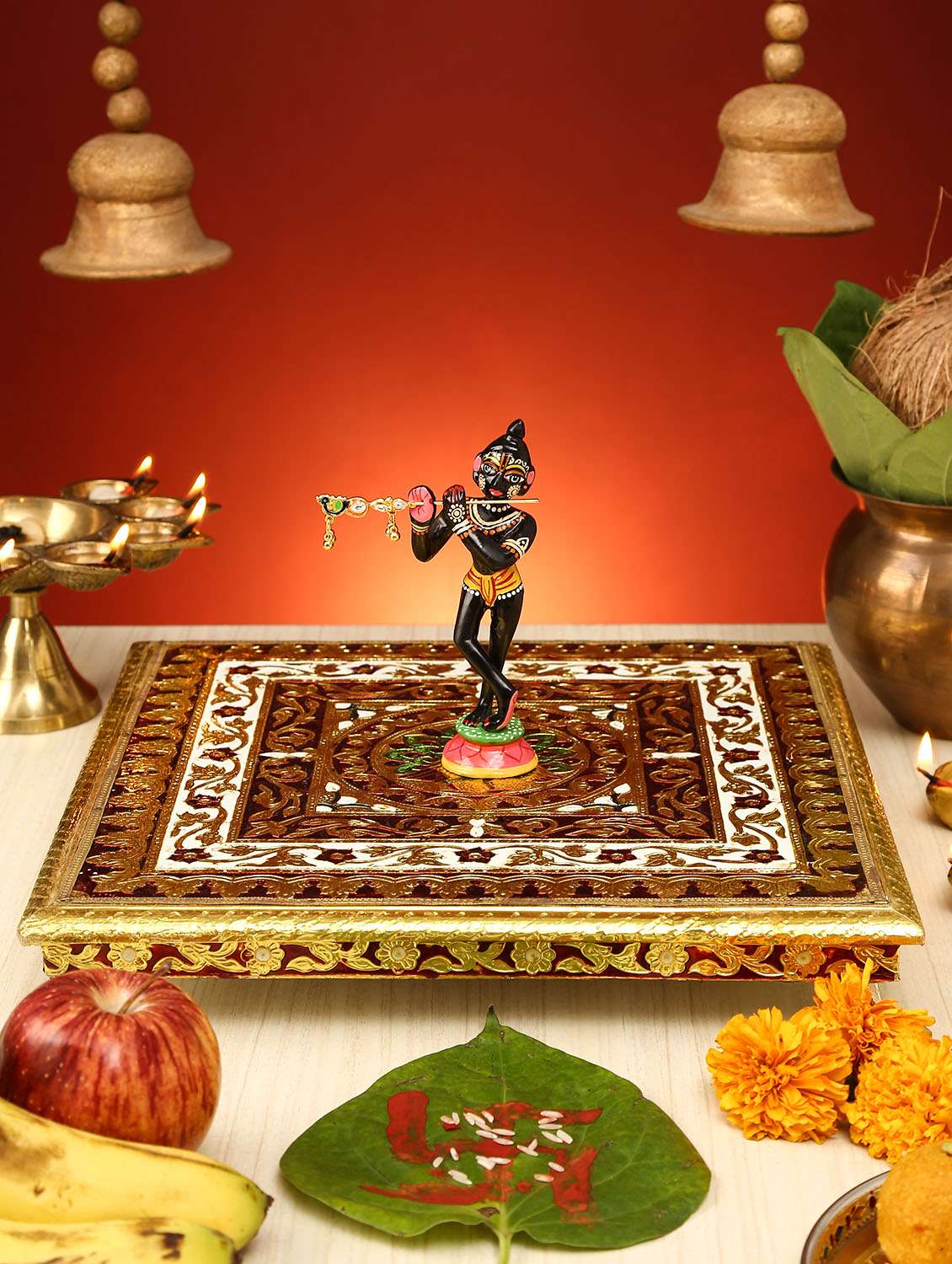 carnival peacock designed hand-made wooden meenakari rajwadi chowkipatra