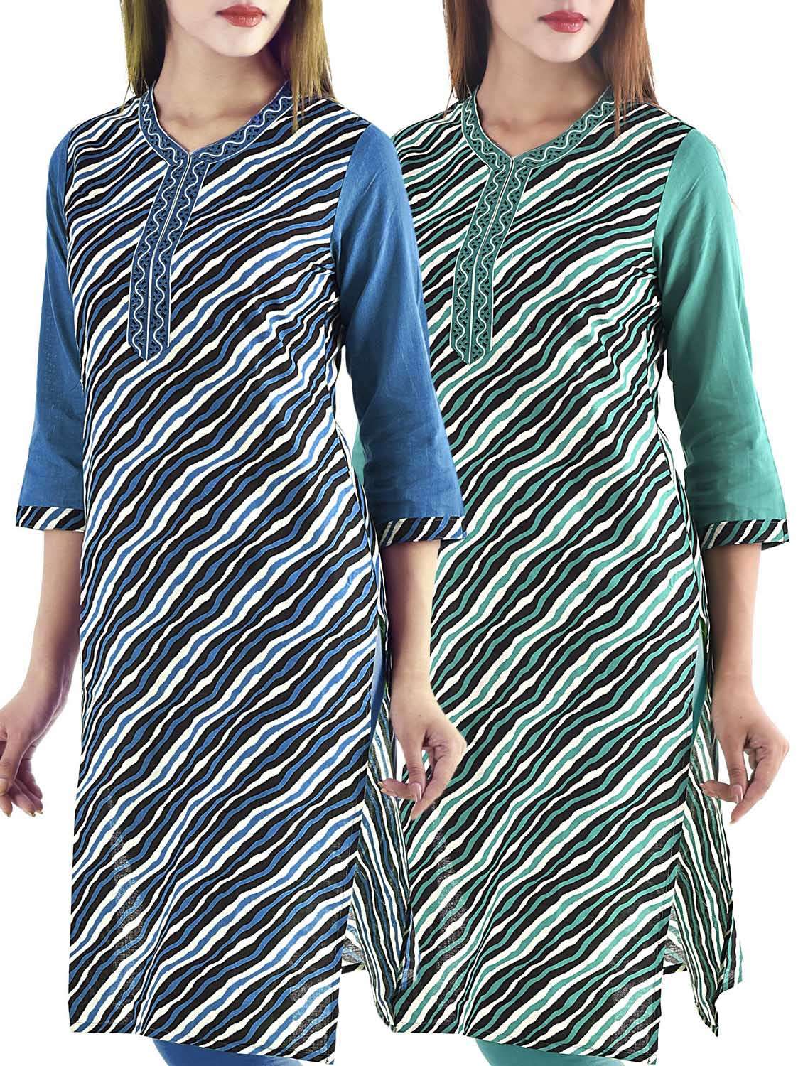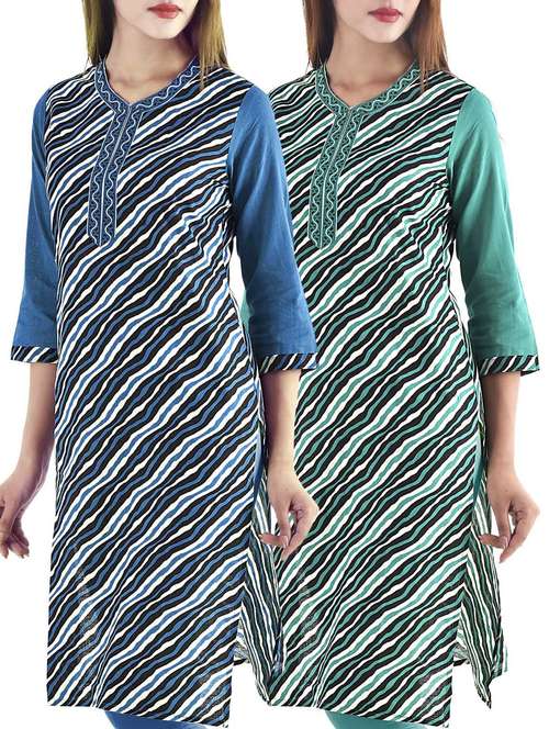 multicolored cotton regular kurta set of 2 - 11334073 - Very Small Image - 1