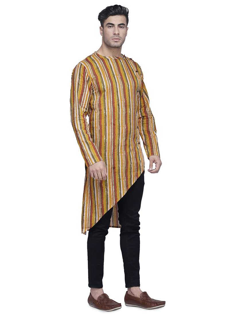 Aarsha MultiColor Printed Asymmetric Men's Cotton Kurta