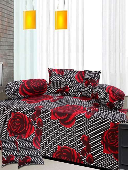 cotton 8 pcs diwan set(1 single bed sheet, 5 cushion covers & 2 bolster covers)