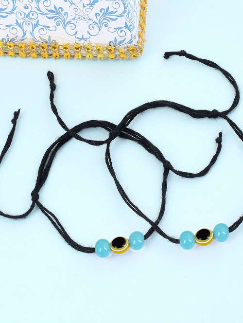 trendy yellow oval evil eye black with blue beads payal anklet dori