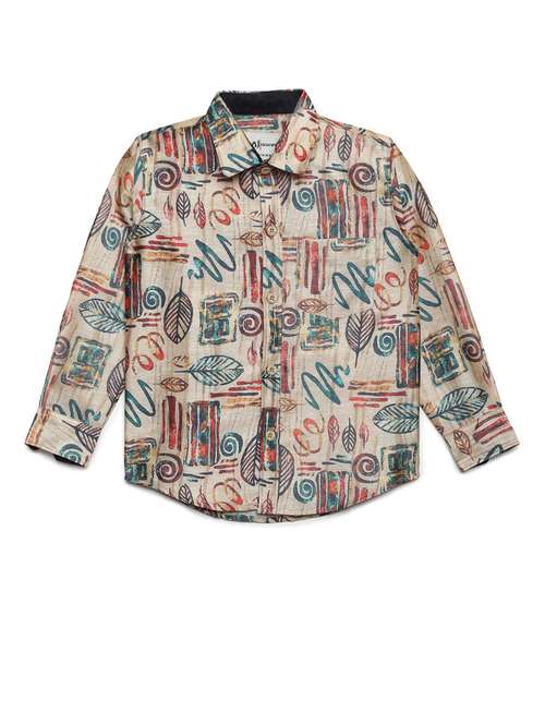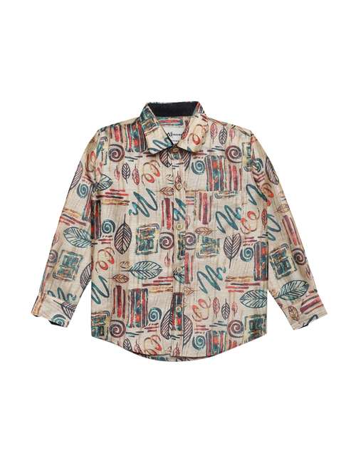 - » pocket patched abstract print shirt