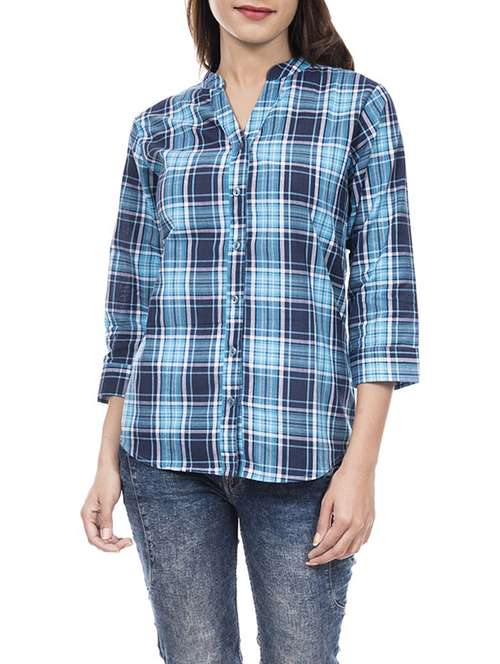 mandarin neck checkered shirt