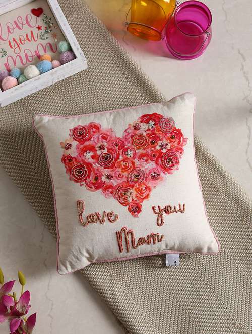 - » love you mom handcrafted cushion with sequin and beads work