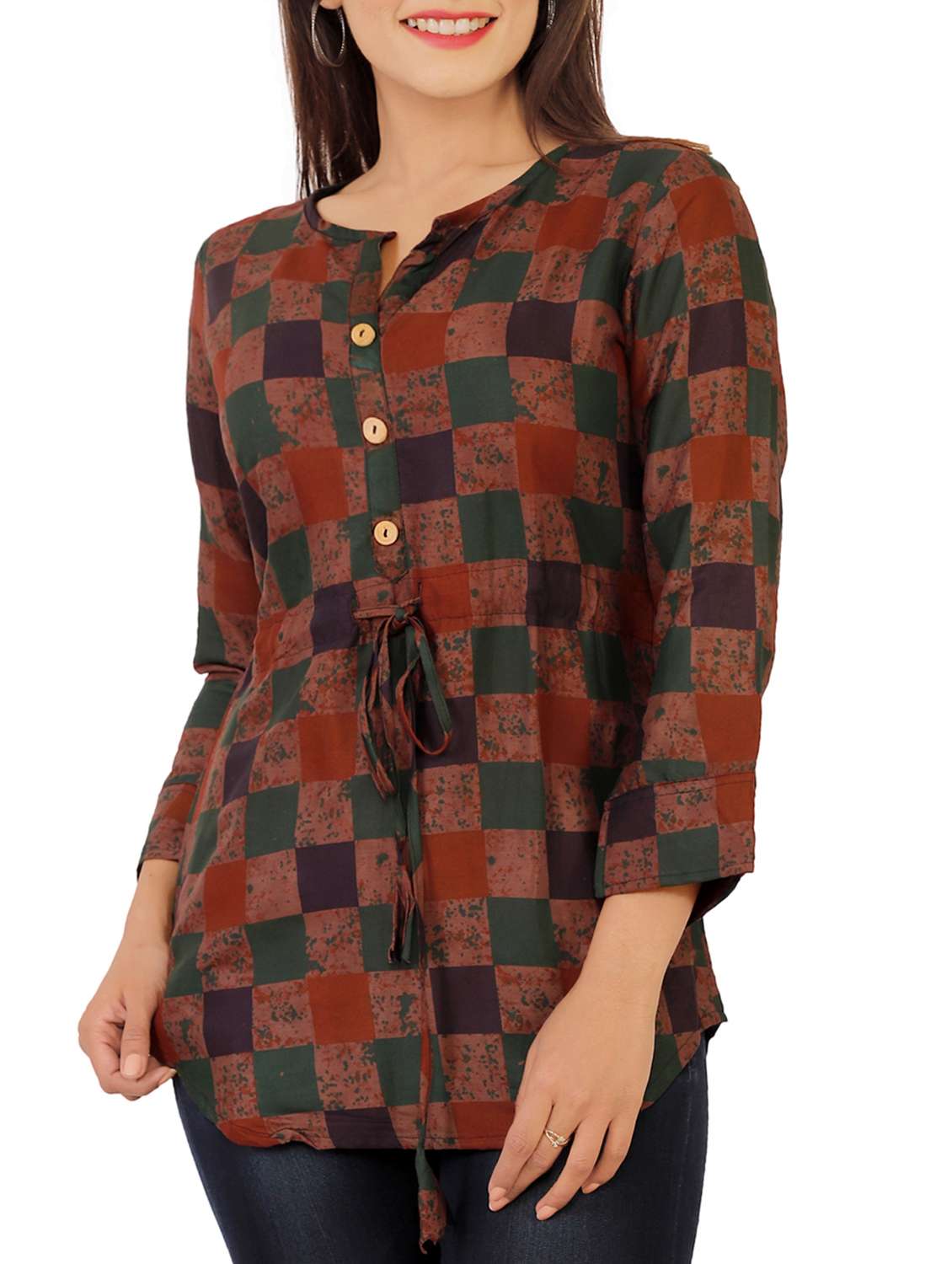 checkered drawstring a-line kurti - 16064311 - Very Small Image - 1