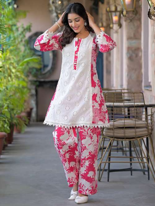 - » women floral three quarter sleeve ethnic co-ord set