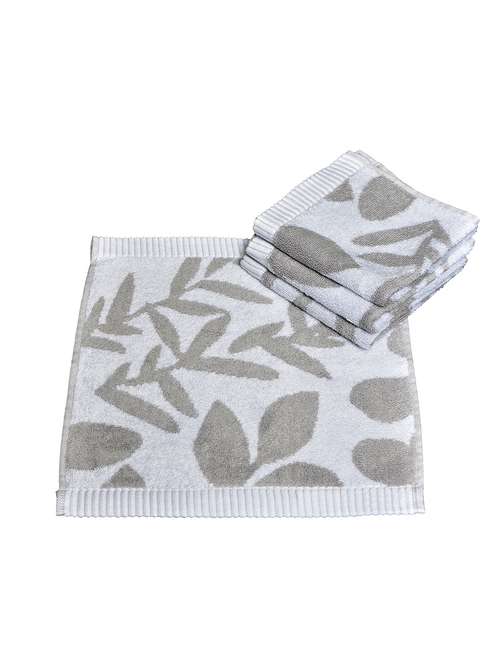 - » avira home 600 gsm luscious leaves 100% cotton face towel-set of 4-grey & white