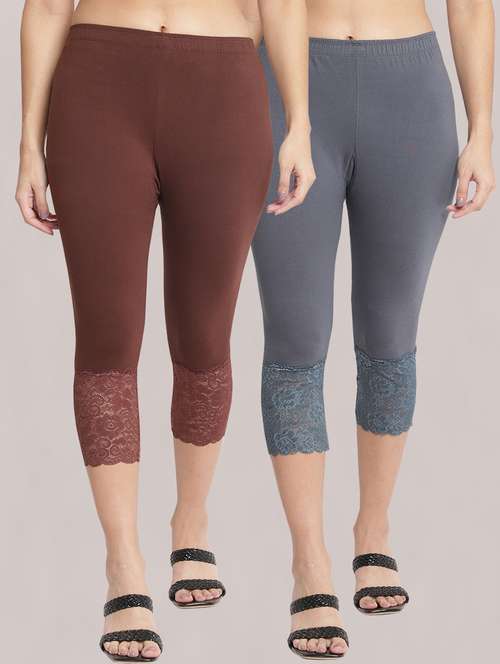 pack of 2 solid lace detailed capris