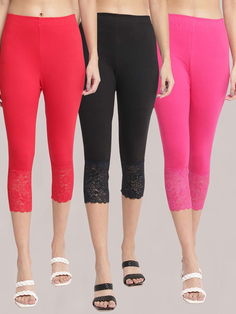 pack of 3 solid lace detailed capris - 20148490 - Very Small Image - 1