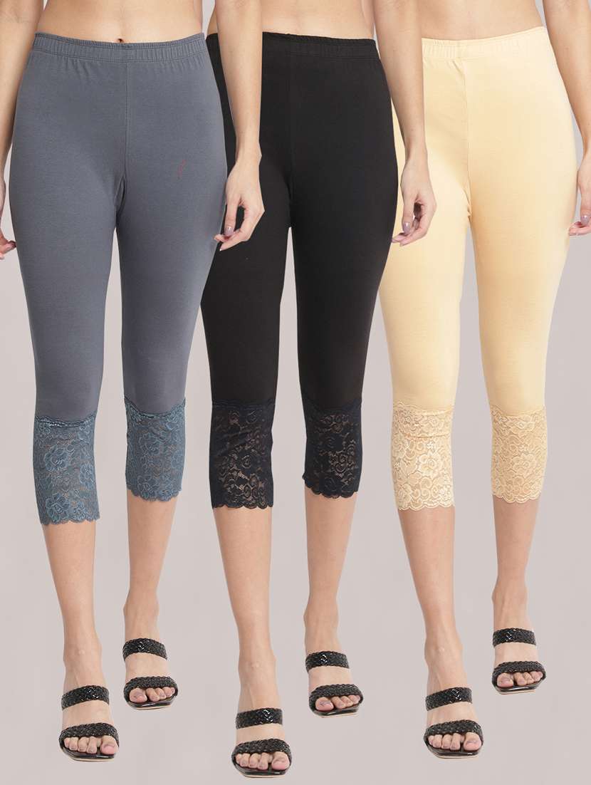 pack of 3 solid lace detailed capris - 20148497 - Very Small Image - 1