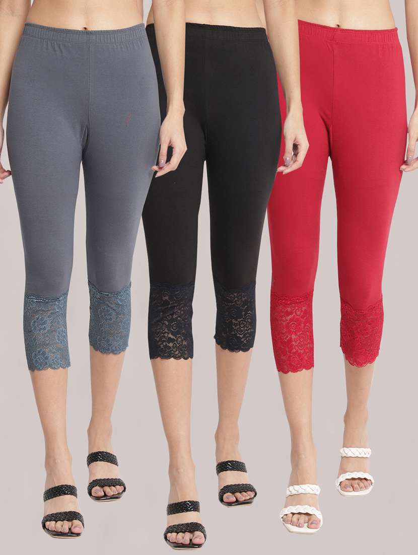 pack of 3 solid lace detailed capris