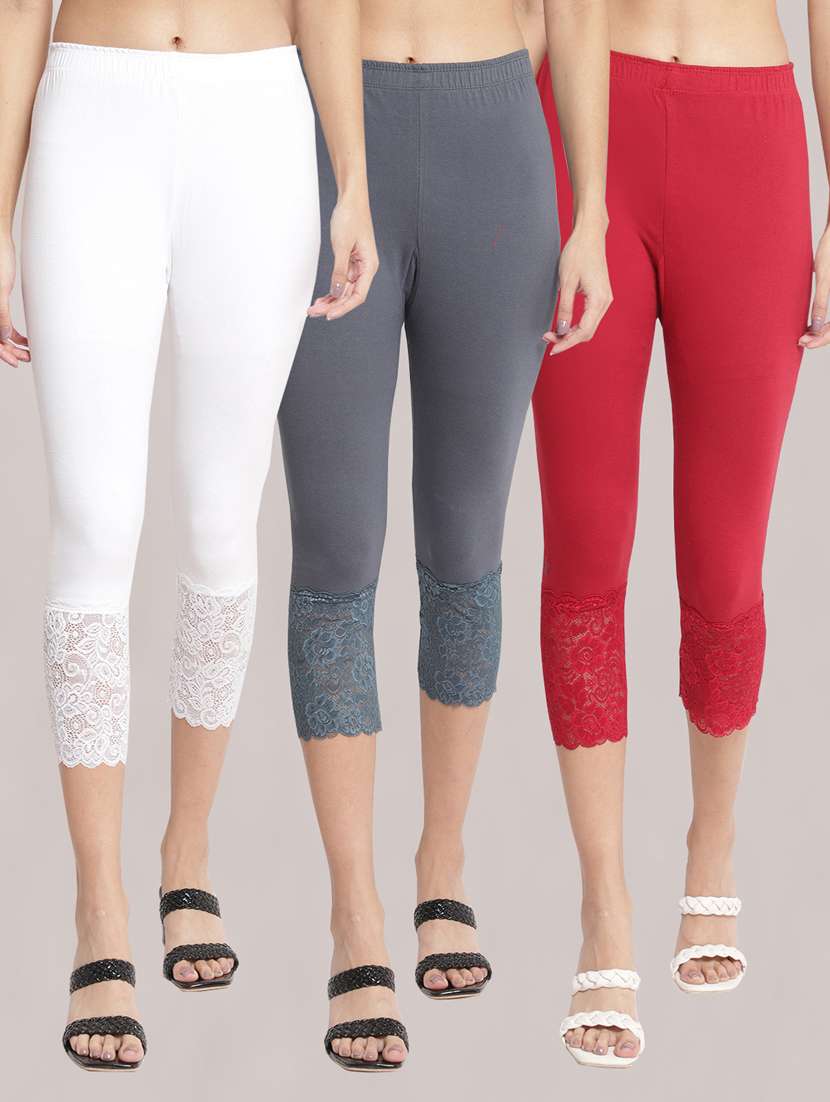 pack of 3 solid lace detailed capris