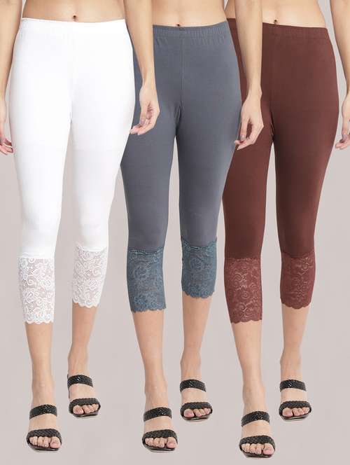 pack of 3 solid lace detailed capris - 20148528 - Very Small Image - 1