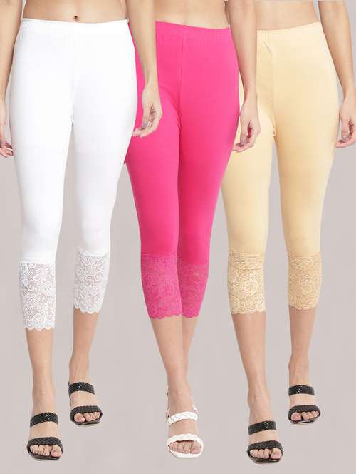 pack of 3 solid lace detailed capris