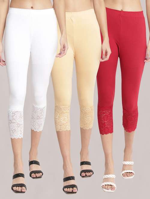 pack of 3 solid lace detailed capris - 20148535 - Very Small Image - 1