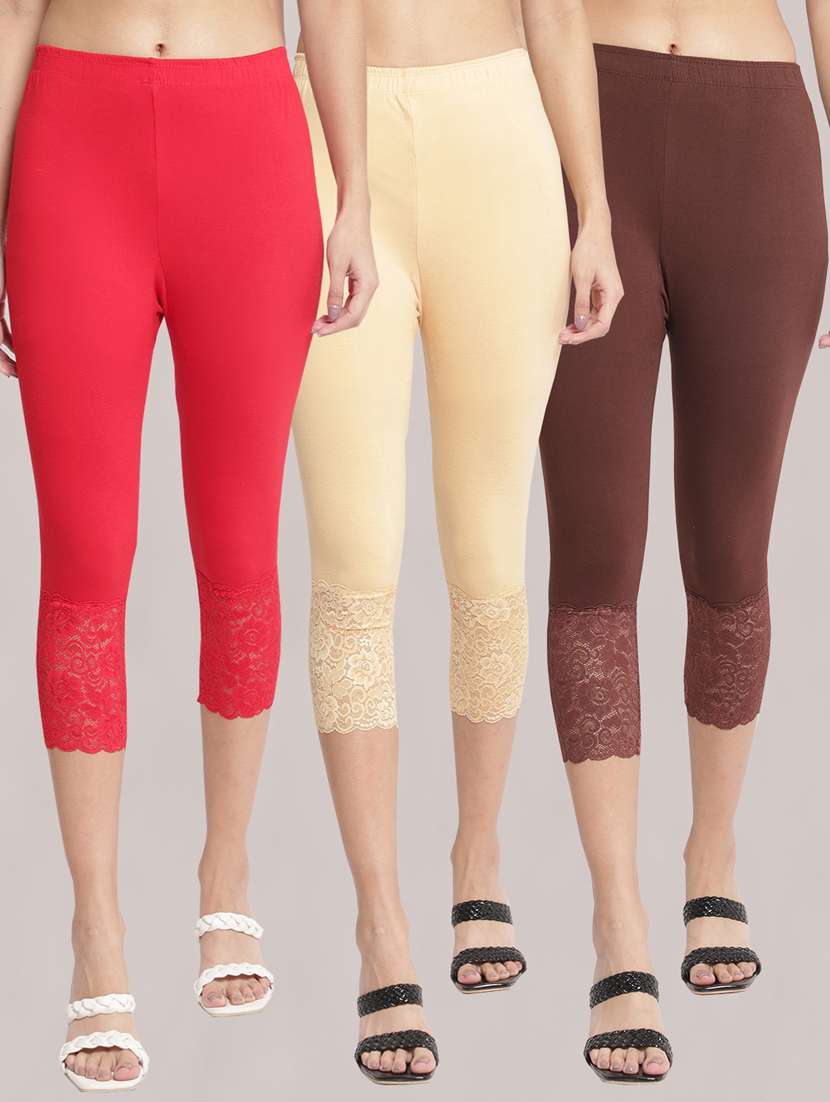 pack of 3 solid lace detailed capris - 20148558 - Very Small Image - 1