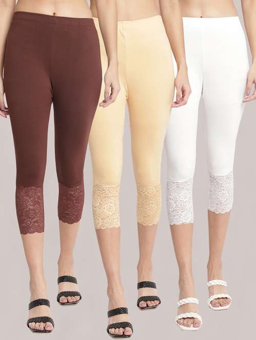 pack of 3 solid lace detailed capris - 20148596 - Very Small Image - 1
