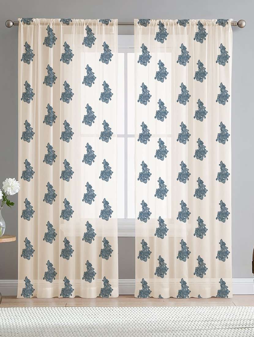 white printed curtains