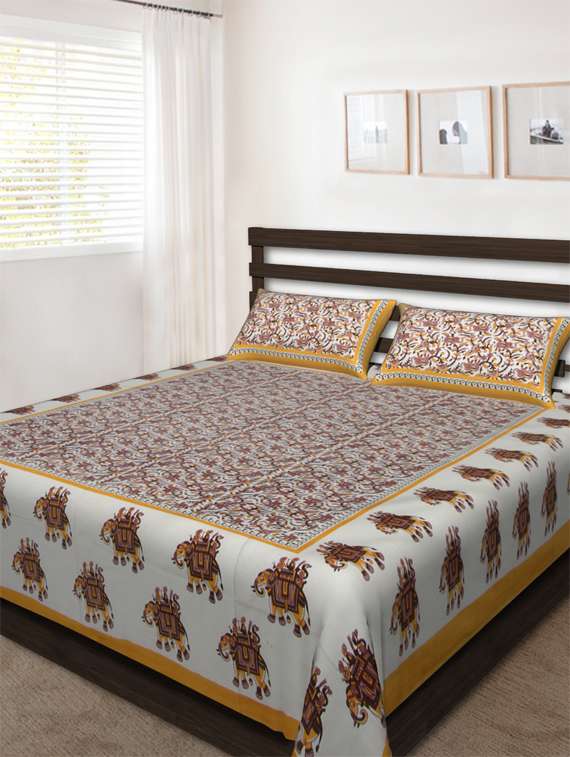 - » cotton jaipuri traditional double bedsheet with 2 pillwo cover
