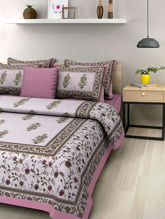 cotton jaipuri traditional double bedsheet with 2 pillwo cover