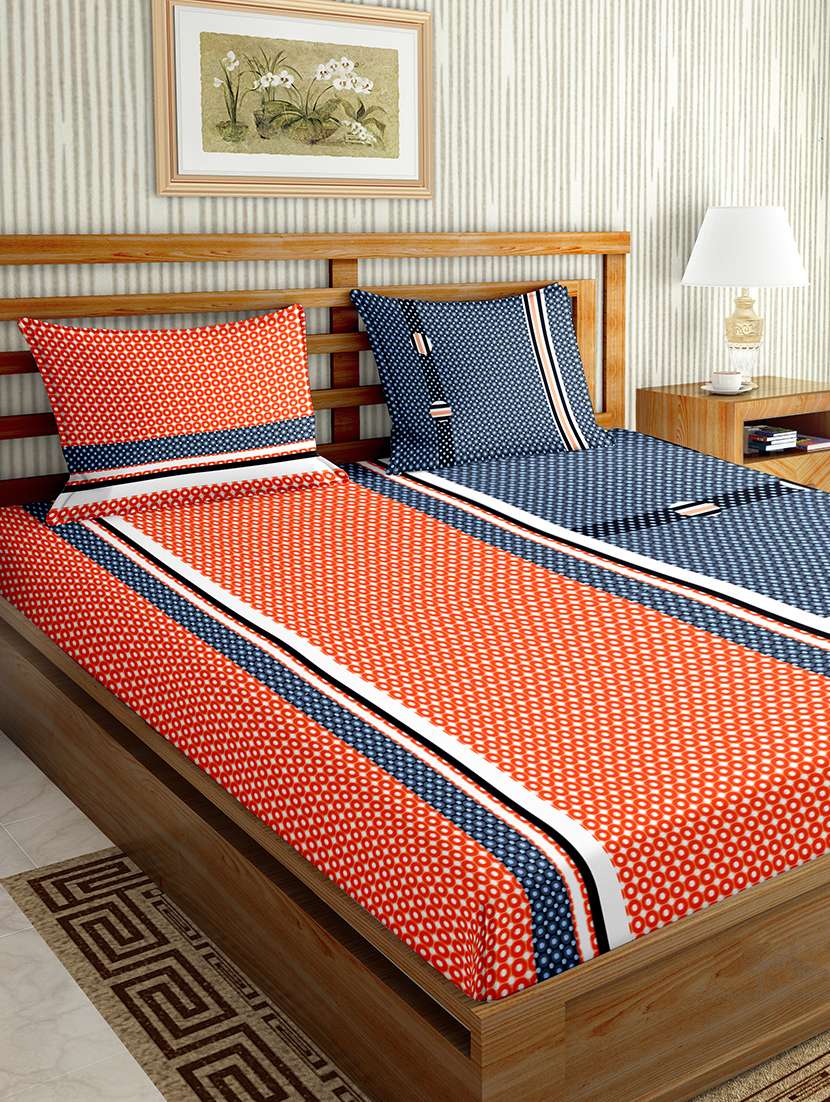 - » mysterious double bedsheet set king size 180 tc cotton multi colour