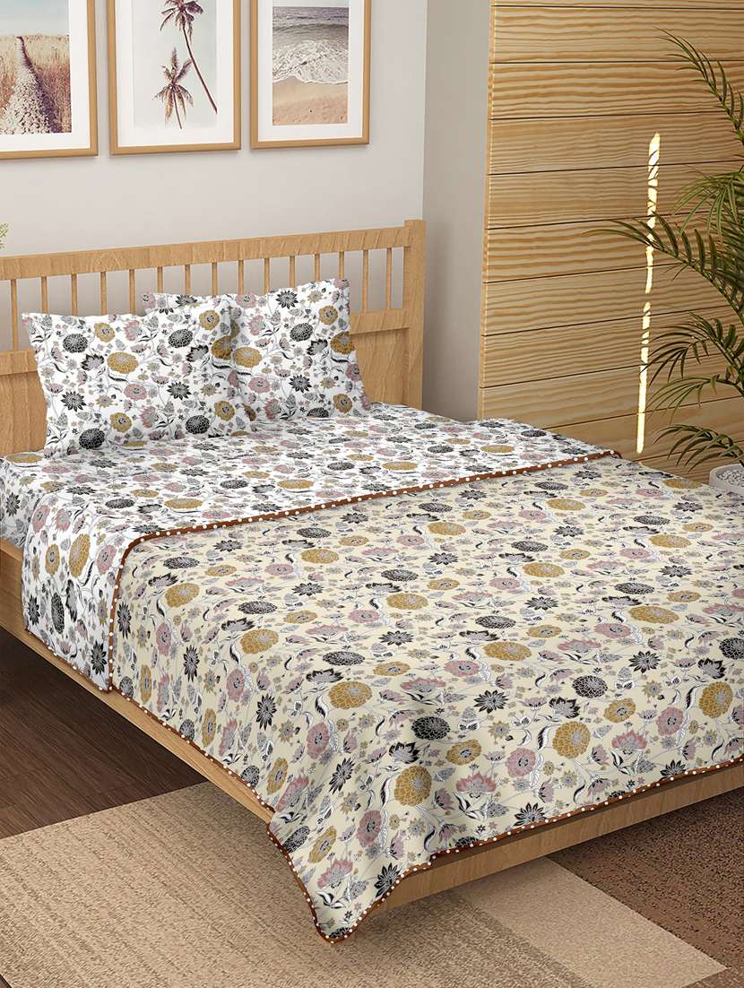 150 tc floral print cotton 4-piece bedding king size set (1 dohar, 1 bedsheet with 2 pillow covers )
