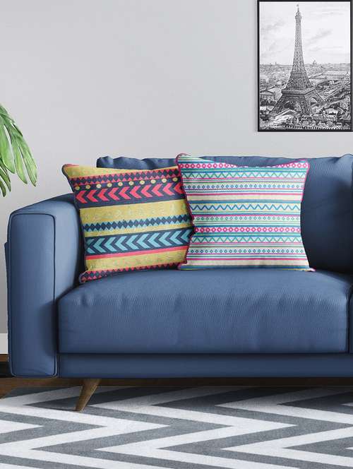 - » bianca tweed handloom luxury cushion cover with rich-texture [zipper closing on back] -2pc set- abstract-multi