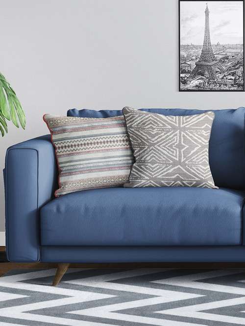 bianca tweed handloom luxury cushion cover with rich-texture [zipper closing on back] -2pc set- abstract-multi - 17500250 - Very Small Image - 1