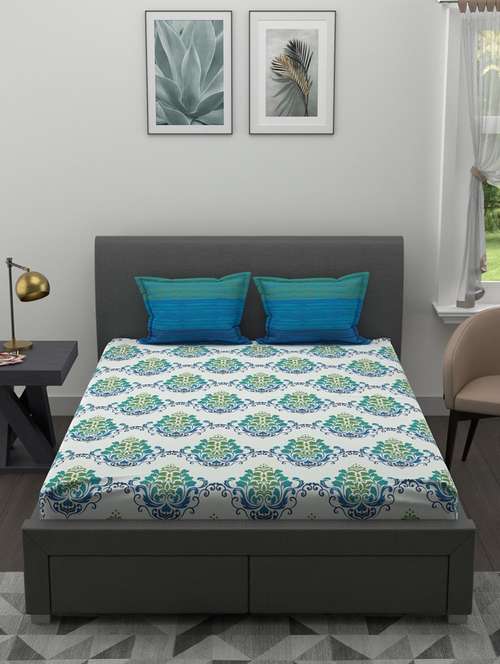 - » bianca soft 100% natural cotton double bedsheet with 2 pillow covers -3pc set (essenza) floral-green/blue