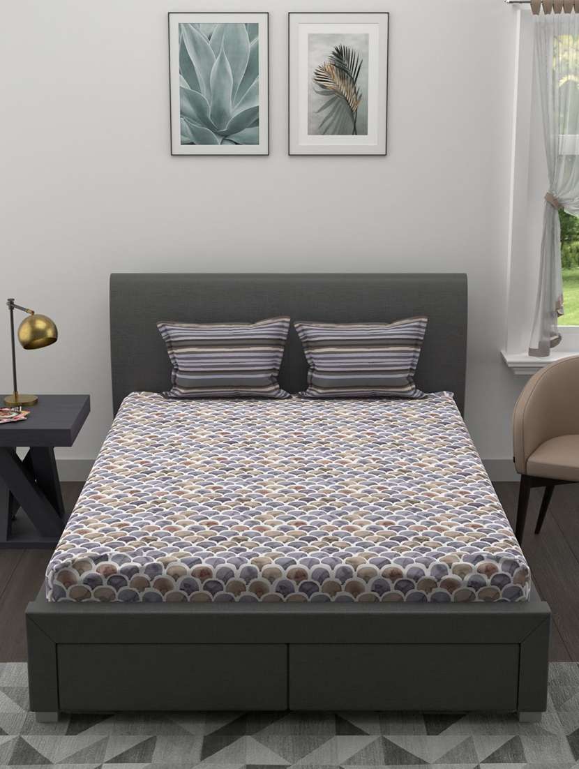 - » bianca soft 100% natural cotton double bedsheet with 2 pillow covers -3pc set (essenza) abstract-brown/multi