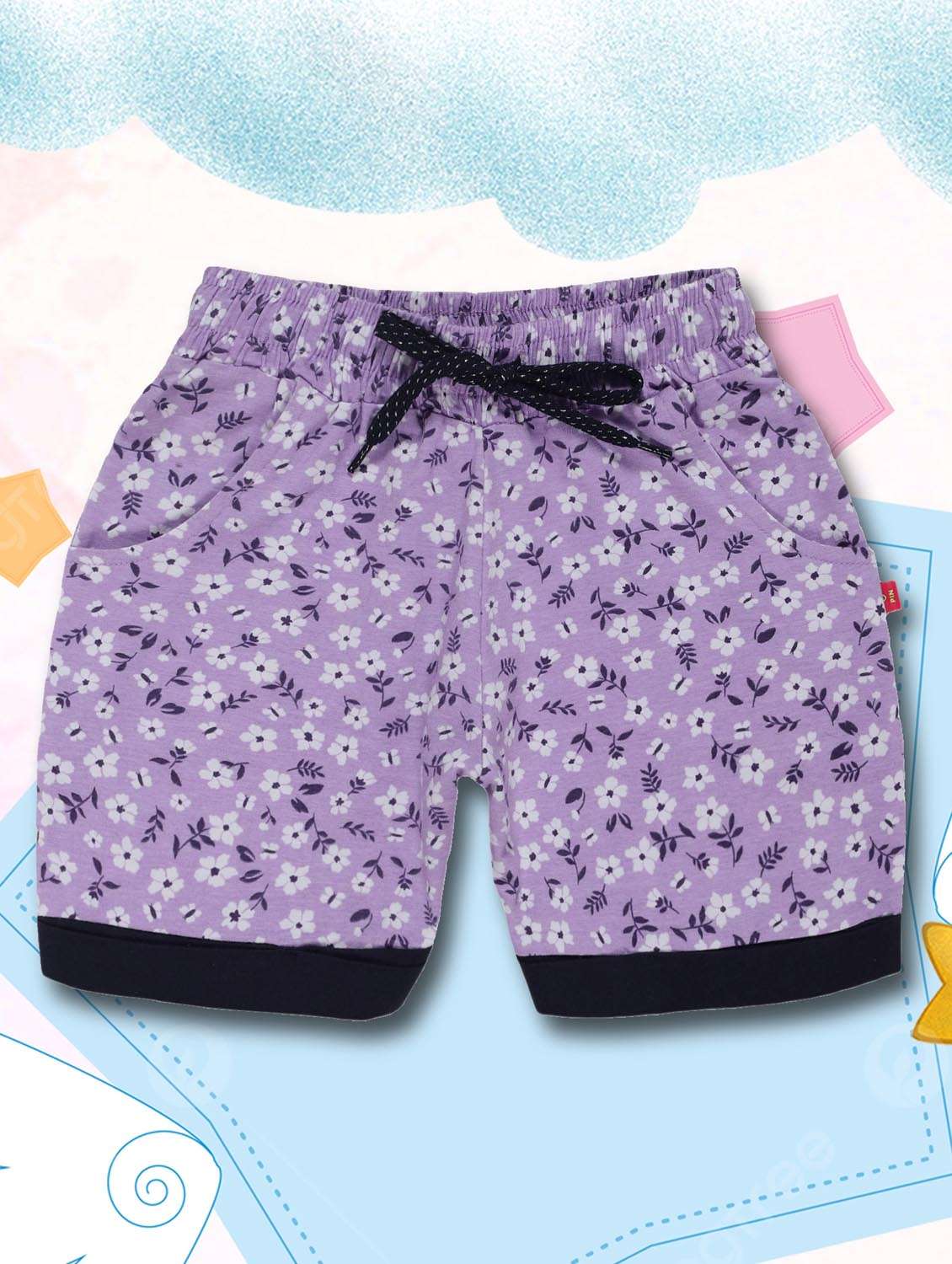 purple printed shorts