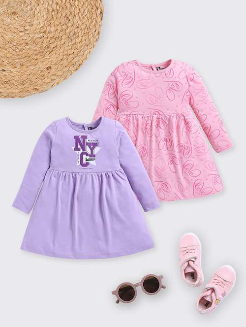 - » girls printed pack of 2 long sleeve a-line dress