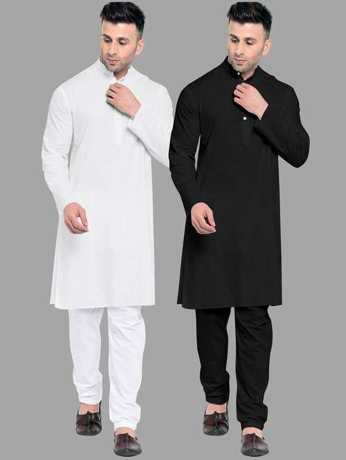 Pack Of 2 Mens Simple Stright Kurta With One Black Pyjama And One White Pyjama Only