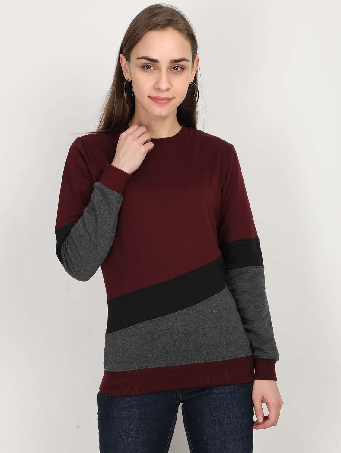 - » color block crew neck regular sweatshirt